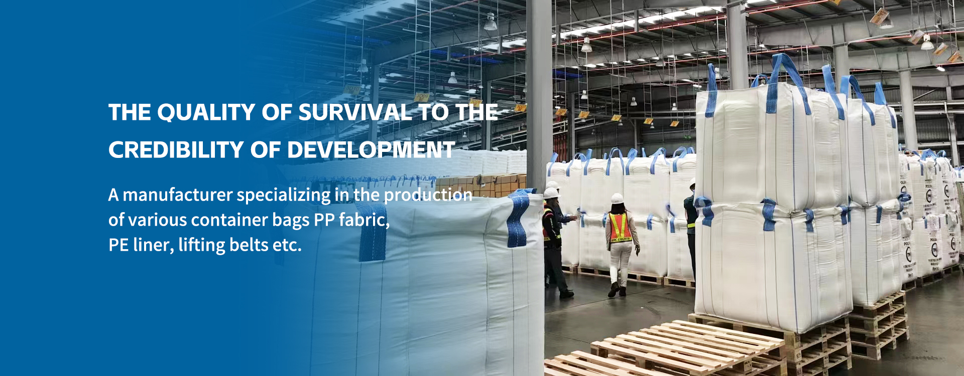 A leading manufacturer of FIBCs (Flexible Intermediate Bulk Containers), PP fabrics, PE materials, lifting belts, and more. With over 10,000㎡ facility and 300+ skilled workers, we specialize in R&D, production, and sales of high-quality packaging solutions, including food-grade, chemical, and concrete pump bags.